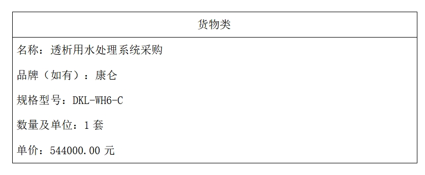 二、項目名稱:透析用水處理系統(tǒng)采購