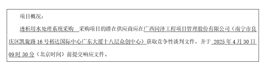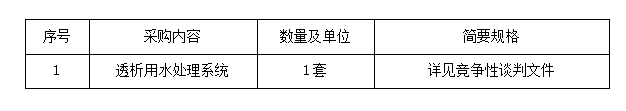 項目名稱:透析用水處理系統(tǒng)采購